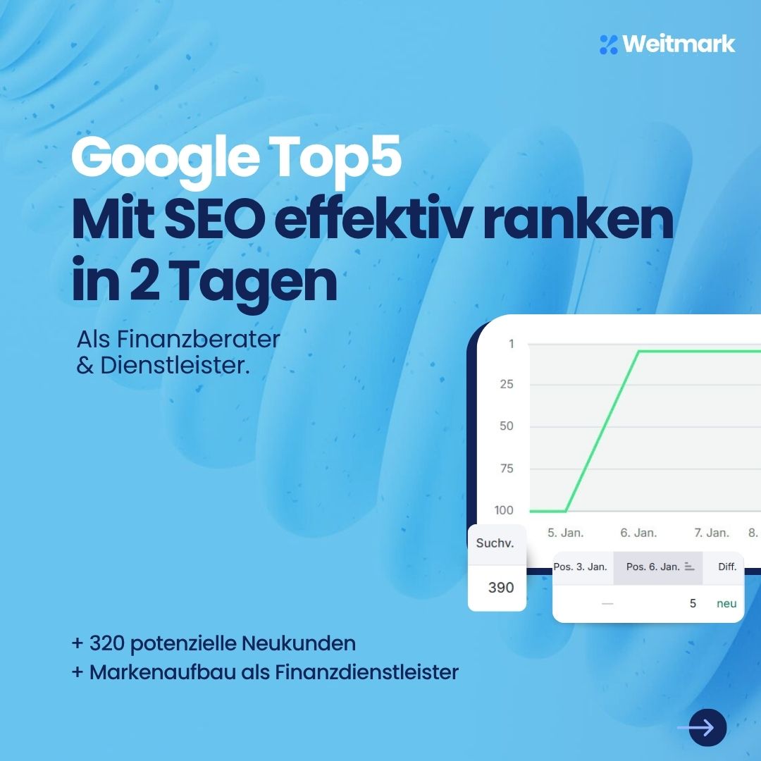Für Finanzberater und Dienstleister ist eine starke Online-Präsenz entscheidend, um potenzielle Kunden zu erreichen und Vertrauen aufzubauen. SEO bietet ihnen die Möglichkeit, gezielt Ihre Zielgruppe anzusprechen und Ihre Dienstleistungen dort sichtbar zu machen, wo die Suche beginnt: bei Google.