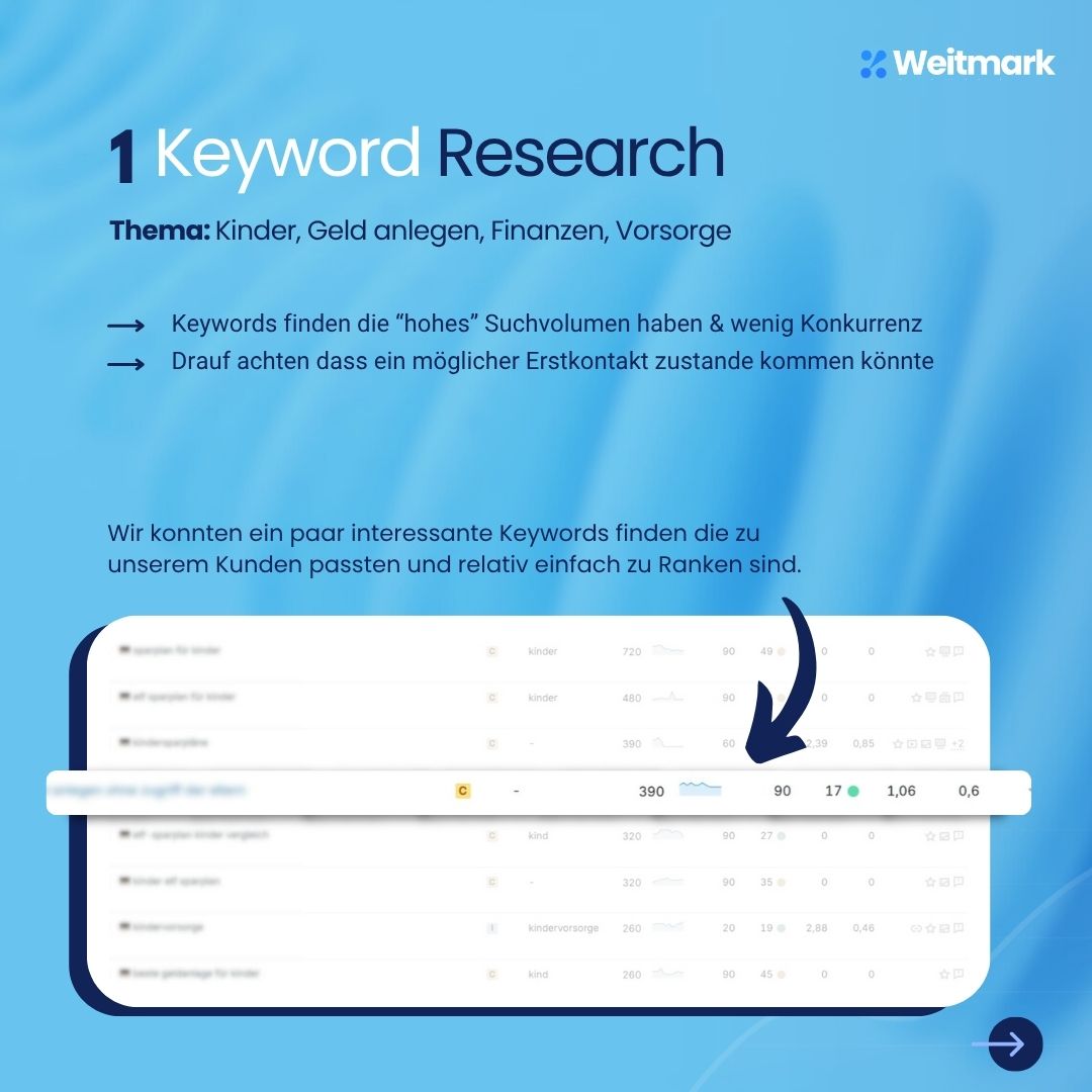 Wir entwickeln eine individuelle SEO-Strategie für Finanzberater und Dienstleister – basierend auf fundierter Keyword-Recherche, Konkurrenzanalyse und maßgeschneiderten Maßnahmen.