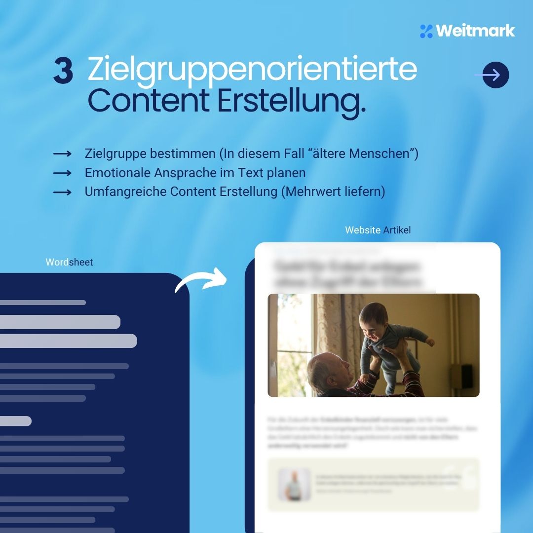Wir erstellen suchmaschinenoptimierte Inhalte, die Ihre Zielgruppe überzeugen und gleichzeitig Top-Rankings erzielen. Mit relevanten Themen, klarer Struktur und strategischer Keyword-Integration.